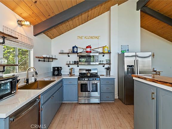 Welcome to 1219 Klondike, a true mountain retreat with lake rights, views, and endless potential! Nestled at the end of a quiet cul-de-sac on Lake Arrowhead's desirable northwest side, this charming 3 bedroom, 2 bath home offers the perfect blend of comfort, privacy, and opportunity. Step inside and enjoy the inviting open layout, updated finishes, and fresh mountain air pouring in from oversized windows. One of the home's standout features is the rare 3-car garage, providing ample space for vehicles, boats, and lake toys. Just above, you'll find a bonus room offering flexibility as a game room, office, or creative studio. An additional unfinished pool room, complete with architectural plans, provides even more possibilities to customize and expand the living space to your vision. Enjoy the perks of exclusive lake rights, making it easy to take advantage of everything Lake Arrowhead has to offer from boating and kayaking to private beach clubs, pickleball, and lakeside trails. Recent updates include a beautifully refinished kitchen and an expanded, modernized bathroom, ensuring comfort and style for years to come. Whether you're searching for a full-time residence, a mountain getaway, or a vacation rental opportunity, 1219 Klondike delivers with privacy, parking, and a location that can't be beat. Your mountain lifestyle starts here, don't miss this chance to call Klondike home.