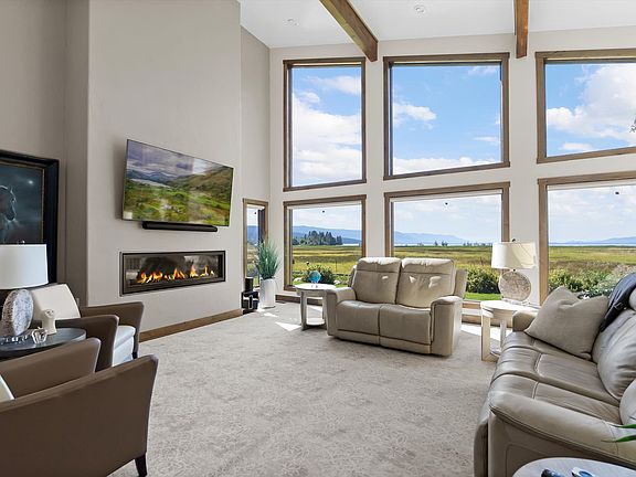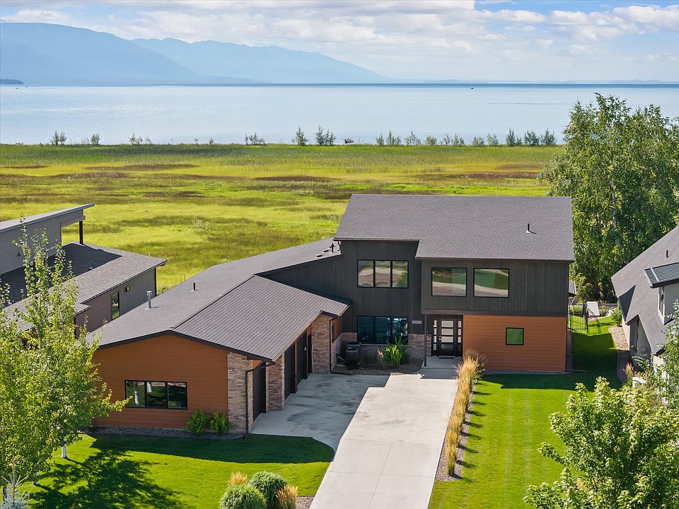 Overlooking Flathead Lake, this custom-built home in a private gated community is designed for both comfort and entertaining. Inside, the spacious layout features a stunning living room with cathedral ceilings and a floor-to-ceiling window wall that frames the sweeping lake views, flanked by a cozy fireplace. The open, well-planned kitchen includes a butler’s pantry and flows seamlessly to the dining and living areas. Step outside to the expansive covered patio, complete with gas heaters, allowing you to enjoy the outdoors and entertain guests nearly year-round. The main-level primary suite is elegant and inviting, with a beautifully appointed bath. A private guest suite is also located on the main floor for convenience. Upstairs, you’ll find three additional rooms: a large flex room ideal for a media or game space, a guest bedroom with lake views. A fourth room suitable as a bedroom, office, or hobby space (note: this room does not have a code-compliant window). Close access to Flathead Lake, just across the street from Eagle Bend Golf Club and only minutes from the Village of Bigfork, this property truly delivers on location, location, location!