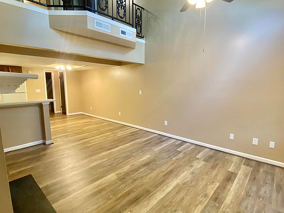 This 2 bed 2 bath townhome features soaring ceilings with loft overlooking living room, woodburning fireplace, open kitchen with breakfast bar, extra storage under stairs, beautiful laminate hardwood flooring, and a covered deck! The master suite features a jetted tub, double vanity, walk in closet, and covered balcony! This is truly a must see and so affordable!!