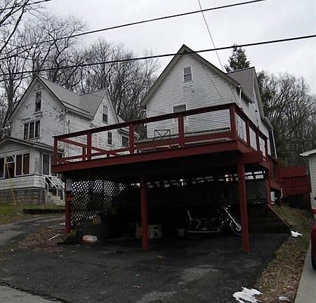 Metal Roof hard coat plaster siding needs work but could be a very good property. 2 bedrooms on 2nd floor and a walkup attic through the 2nd bedroom closet to 2 additional finished rooms without closets. Pool has not been used since summer 2019