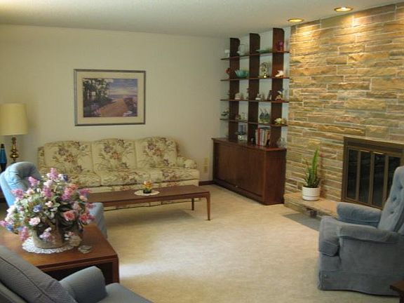 Immaculate and well maintained. This 2 bedroom home, with another main floor room for a den/office. Spacious living room includes a gas fireplace and built in cabinets. Big eat in kitchen, has a portable island and informal dining area with 2nd gas fireplace. All appliances stay,(not warrantied) Attached garage on nice sized lot. Open unfinished lower level with endless possibilities. There is a toilet and utility sink there already. Offering a 1 Year home warranty with accepted offer. Ready to move into!