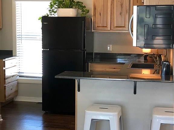 Native Land apartments renovated in 2018! One bedroom One Bath w/an Office or Flex Space, this is located upstairs! Walkable/bike-able to the Plaza District and minutes to Midtown/Uptown and Downtown. dogs under 20lbs welcome with pet fee $350. Parking in back. AMENITIES; Granite counter tops, wood floors, 2" faux wood blinds, stainless steel or sleek black appliances, builtin microwave, gas stove. Renovated bathroom w/ tiled tub/shower, and washer dryer in apartment. Modern paint colors throughout. INCLUDED water/trash removal. Broker/Owner rental price if for 1 resident, add'l adult resident is $40 more a month.
