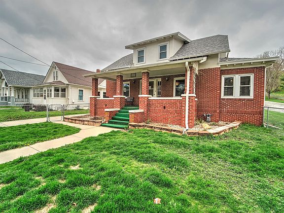 A wonderfully crafted home featuring brick and stucco. Charm factor of 100 !Original wood floors, trims and beavered glass windows. Two pairs of French doors New kitchen, bath and windows. A very open main floor with a fabulous sunroom which could be the perfect office space. Next door to the grade school and walk to the grocery store. A front and back porch, flat yard and fenced. You will love all the space for your auto's PLUS a over sized two car garage. Note: 3rd bedroom is non-conforming. SHOWINGS START SATURDAY