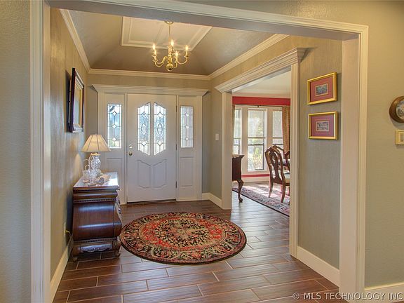 Incredible unobstructed views of a large pasture, trees, and hills from your backyard! Watch the wildlife and beautiful sunsets from the covered backyard deck. Quiet and friendly neighborhood of Green Country Estates near Hwy 64 and Haskell Schools. No HOA. This home is a past builders custom-built home on a 1.22-acre lot. Wrought iron fencing upfront, post fencing in the back. Side-entry oversized 3-car garage with lots of shelving. Single story home, 2806 square feet, 3 large bedrooms, lots of closet space. Full hall bath and ½ bath in the laundry area. Tray ceilings in the dining rm, living rm and master bedrm. Backyard views from the cozy den with fireplace, kitchen/breakfast nook, formal living rm and master bedrm. Located 15 minutes from Bixby, 35 minutes from Broken Arrow and 3 minutes from the Haskell Airport.