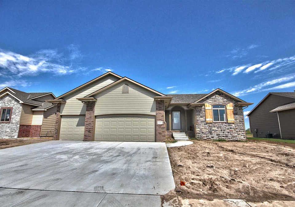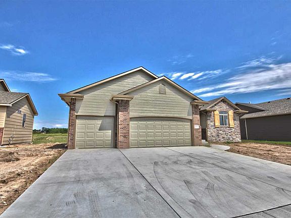 New New New!Gorgeous 4 bedroom, 3 bath, 3rd car garage home in New Neighborhood in Derby!. Split Bedroom, Open Floor Plan. Beautiful Engineered Hardwood floors in main living area.. Elegant Master Bedroom Suite with his and hers closets, seperate shower with whirpool soaking tub.. Large Family room with wet bat and fireplace. 4th bedroom and 3rd bath complete the downstairs. Large covered and new sod and sprinkler. Close to Shopping, Restaurants, And Schools. Call today to Schedule your private viewing! (specials have not yet been spread but will be spread for 20 years.Generals taxes are lot vacant lot only.)