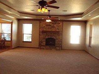 Beautiful custom built home on one and a half lots. Mother in law floor plan with fire place in living room and large master suite. Lots of built-ins for storage and all rooms are large. Beautiful landscaped front and back yard with plenty of room to add a pool .Kitchen has granite counter tops. Master bath has very large closet/saferoom. Yard has sprinkler system with water well .