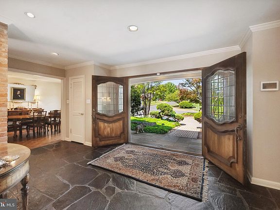 Celebrated for its stately architecture and timeless appeal, Evermay is one of McLean’s most coveted communities, admired for its generous homesites, manicured landscaping, and pedestrian-friendly tree-lined sidewalks. This distinguished split-level residence offers a rare opportunity to reimagine a classic home on an expansive lot, showcasing a four-side brick exterior, a sweeping semi-circular brick driveway, and beautifully maintained gardens. A slate-covered front porch and custom solid wood double doors welcome you into a spacious foyer with natural stone flooring, setting the stage for the elegant interiors. Designed for both refined entertaining and comfortable daily living, the home features expansive, sunlit spaces. The formal living room includes a handsome brick wood-burning fireplace and oversized sliding glass doors that open to the serene rear grounds. Rich oak parquet-style hardwood flooring and crown molding flow into the formal dining room, framed by a charming bay window. The chef’s kitchen is equipped with solid wood cabinetry, granite countertops, and stainless-steel appliances, including a 48” professional-grade KitchenAid refrigerator. A peninsula with breakfast bar seating overlooks the inviting family room with vaulted ceilings, a dramatic brick fireplace wall, and oversized sliding doors showcasing views of the koi pond and waterfall. A convenient powder room and laundry/mudroom with garage access complete the main level. Up just half a flight, the sunlit upper hall features hardwood floors and a skylight. The primary suite offers crown molding, plantation shutters, a walk-in closet, and a spacious ensuite bath with dual vanities, soaking tub, walk-in shower with bench, and ample cabinetry. Two additional bedrooms share a buddy bath with double vanity and combined tub/shower. The lower level includes a generous recreation room with parquet-style oak hardwood flooring and a third brick fireplace. A vintage-style wet bar with seating makes entertaining easy, while two more bedrooms, one ideal as an office, share a large buddy bath. Outdoors, the home becomes a private sanctuary. A sprawling slate patio with multiple seating areas overlooks the lush backyard, highlighted by a koi pond with cascading waterfall and an oversized hot tub. Stepping-stone paths wind through the fully fenced, professionally landscaped gardens. Just minutes from Tysons Corner's world-class shopping, dining, and entertainment, the home also offers effortless access to Georgetown Pike, GW Parkway, I-495, I-66, the Dulles Toll Road, the Silver Line Metro, and Washington, D.C. Nature lovers will appreciate nearby access to a 150-acre wooded preserve with scenic trails and Clemyjontri Park, a beloved local playground just three minutes away. Franklin Sherman Elementary, Longfellow Middle, and McLean High School.