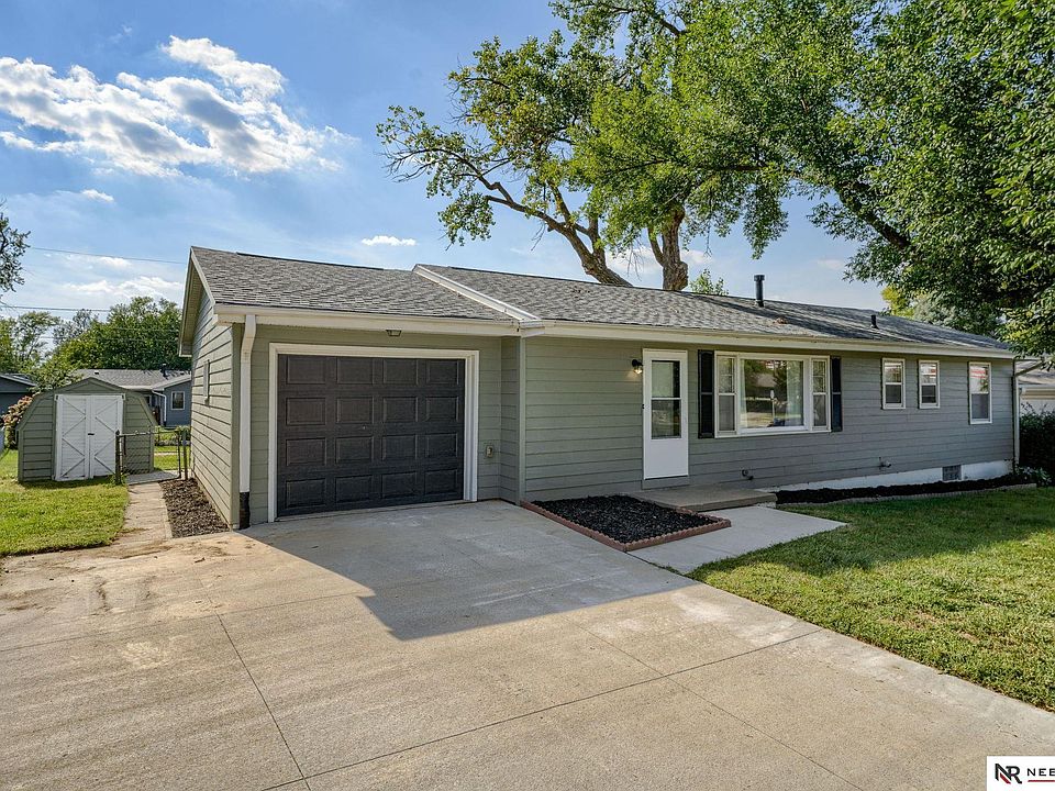 This beautifully updated 3-bedroom ranch blends modern touches with classic charm. Original hardwood floors have been refinished to a beautiful luster, while new LVP and carpet flow through the rest of the home. Fresh professional paint, new fixtures, and thoughtful updates make this home move-in ready. The redesigned kitchen features sleek cabinetry, stone countertops, stainless steel appliances, and a standalone pantry and opens to the living area with ample natural light from the large windows. There's a stylish full bath and all bedrooms have new ceiling fan fixtures, and the primary bedroom features a private 1/2 bath. The finished basement offers 2 versatile bonus rooms, perfect for an office, gym, or hobby space. Step outside to an extra-large backyard with endless potential plus a handy storage shed. Conveniently located just 4 blocks from Bellaire Elementary, 4 minutes to Offutt AFB, and close to shopping, dining, Old Town Bellevue, and Kennedy Freeway.