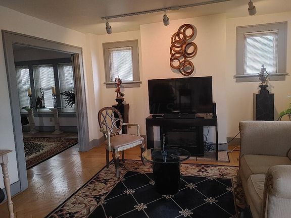 Wow! What wonderful surprises and amenities awaits in this beautifully updated home including spacious rooms, fabulous moldings and wide windows throughout! The large living room features gorgeous chevron patterned perimeter wood floor and the enormous formal dining room boasts plenty of natural light due to virtually wall-to-wall windows. The amazing kitchen showcases recessed ceiling lights, stainless steel oven, custom tile backsplash, extra cabinets and ample storage all adjacent to an extra eating nook/room. Relax in the absolutely cavernous primary bedroom with a true walk-in closet and skylights. The other bedrooms are generously sized with great windows flooding the rooms with light. Enjoy the private fenced backyard and patio plus a huge basement.