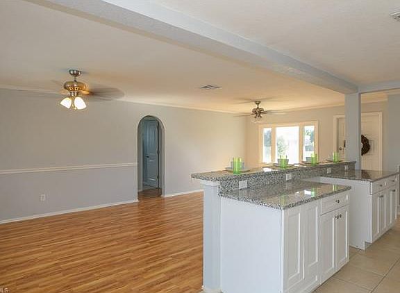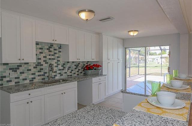 TOTALLY REMODELED!!! NEW FLOORING, NEW SHAKER STYLE CABINETS & GRANITE IN KITCHEN & BATHS, CROWN MOLDING IN LIVING AREA, CHAIR RAIL IN DINING AREA, NEW LIGHTING, NEW 6 PANEL DOORS, NEW HARDWARE, RE-TEXTURED WALLS W/ KNOCK DOWN FINISH, NEW PAINT THROUGHOUT, NEW NEW NEW!!! Sink your feet into this gorgeous 3/2 POOL home in desirable SE Cape Coral. The soft color palette chosen in this home will make you feel like you're in a beach cottage & the open floor plan gives the home a very spacious feel and is perfect for entertaining! The kitchen has over 31 feet of cabinets & pantry space to keep all of your essentials neatly tucked away, as well as a huge amount of counter space for prepping! Step onto the spacious pavered pool deck from your kitchen and enjoy the outdoor living space that this home has to offer, while sitting back and watching the beautiful sun as it sets over the west side of your home. This home truly has it all and priced attractively for its sought after SE Cape location! LEASE PURCHASE AND/OR SELLER FINANCING MAY BE AVAILABLE! CALL FOR MORE DETAILS!