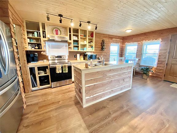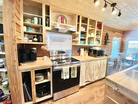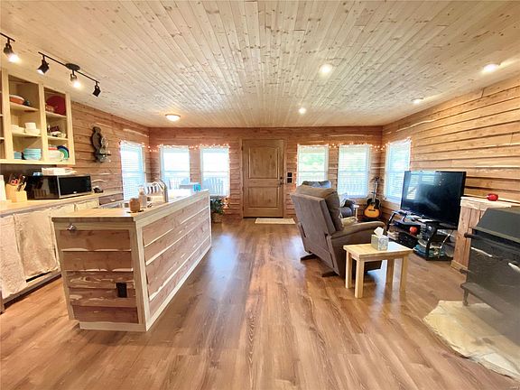 Custom-built cabin situated on 8.5 acres in beautiful Calhoun County. Home offers one spacious bedroom suite w/ master bath, walk-thru closet & door to sun deck. Open kitchen-dining-living area w/ stainless appliances, huge walk-in pantry, additional 3/4 bath. Lots of extras- pine ceiling, cedar walls, LVP flooring in living area, luxurious soft carpet in BR, can lights n dimmers, gorgeous front door, tankless water heater, two oversized Mr. Cool wall units for heating/cooling plus a wood burning stove, storm shelter w/ ladder & heater, 50-year LP smart siding, 40-year 29-gauge steel roof. Outdoors you won't find overhead wires blocking your view with the underground utilities! Chicken coop & full cedar goat shed have electric, two peach trees, two apple trees, dogwoods, evergreens, and vineyard. Wrap around covered porch is the perfect place to see the most beautiful sunsets and the 27' round above ground pool, 4' deep will keep you cool all summer!