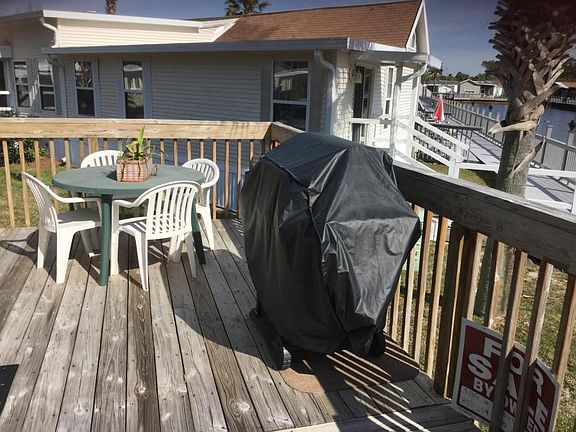 This is an incredible property. Easy entry with new front steps and landing. New extra large carport and concrete driveway with room for a golf cart. This waterfront home features a beautiful deck overlooking the water, a screened porch and a huge living room with windows all around covered by custom drapes. The lot is larger than most. The windows have been treated to withstand 100mph winds. Stackable laundry center in unit. Brand new A/C unit(2018). This home sits in a gated community with low HOA fees. It has 2 pools 1 is heated, a clubhouse and a catch and release pond right out the back door. This home provides a relaxation haven. Away from the noise of the crowds but just minutes from great restaurants and shopping. Then, as if you needed more, the worlds most beautiful beaches are just a short drive away!. WOW!!!
