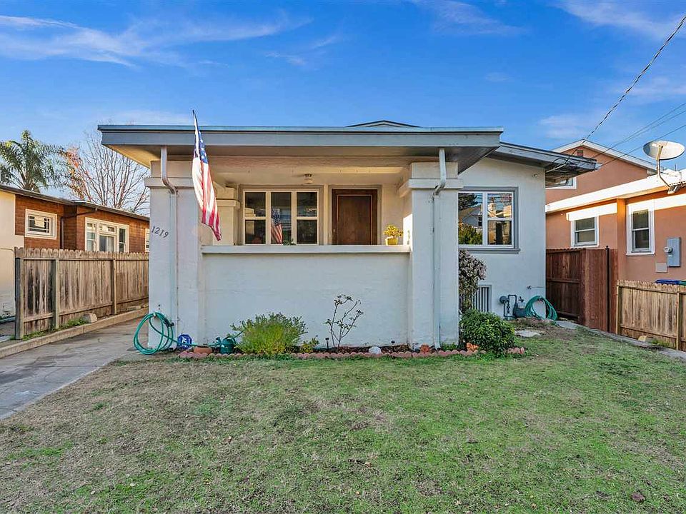 Delightful home with charming original character located in the highly desirable East end of Alameda. Traditional covered front porch, original wood millwork & built-ins, cove ceilings, and hardwood floors throughout. The light-filled living room features a wood burning fireplace and is open to the formal dining room, adjacent to the kitchen and bathroom downstairs. Kitchen includes a gas stove, stainless steel fridge and newer appliances. Spacious master bedroom with windows throughout for light and bright feel and enough room for a sitting area or reading nook. Garage attached to huge downstairs basement and secondary sub basement for a remarkable amount of added room and storage. Enclosed backyard with endless possibilities! Conveniently located near Encinal Market, Park Street, and top rated schools.