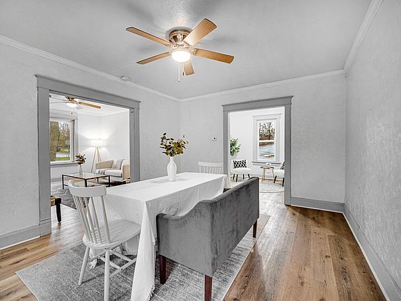 This 3-bedroom, 2-bathroom home is move-in ready and sits on a large corner lot. The home has updated siding, flooring and wiring. As well as stainless steel appliances, granite counters and cabinets in the kitchen. The room off the kitchen would make a great home office and the extra space upstairs could be a second living room/TV area.Home is located within walking distance of a park and just a few minutes' drive to the Michigan City Zoo & beach, shopping and restaurants.