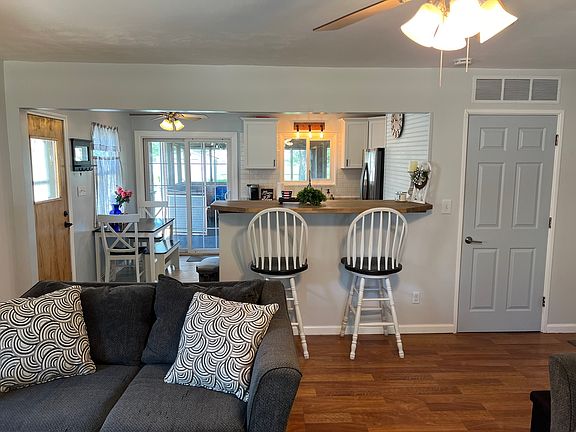 Charming updated home with 2 spacious bedrooms, large living room with bar seating that opens up to the modern kitchen. Kitchen updated in December 2018 including opening up the wall and installing breakfast bar, new countertops, cabinets and appliances. Off the kitchen is a cozy screened in porch with new outdoor carpet to enjoy morning coffee or evening sunsets. The backyard includes a fire pit, shed, and fenced in yard that opens up to St Paul school's open field and playground. Other updates include new flooring in the bathroom in 2020. Newer windows and roof in 2018. New furnace and central air replaced in January of 2018. Garage has extra room with many possibilities - additional storage, weight room, or kid's hideout. This home is close to schools, parks and The REC.