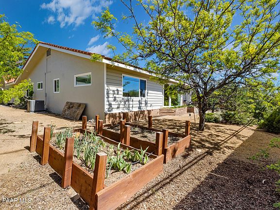 Mid-Century Modern gem with big view of Thumb Butte in the heart of Prescott on a private, level .47 acre lot with RV parking and 2 car attached garage. No HOA! Showcases the functionality, clean lines and simplicity that are the hallmarks of MCM design plus updated amenities. Spacious living room with an original stacked stone fireplace. Master retreat with attached bath and original tile.Third bedroom/bonus room is the perfect in-law suite. Incredible covered flagstone patio is perfect for entertaining with built-in stacked stone BBQ, lush landscaping and privacy fence. Recent updates include windows, landscaping, flooring, paint and more! Check with City on potential commercial use. Close to hospital and medical offices, VA, public and charter schools, and historic downtown Prescott.
