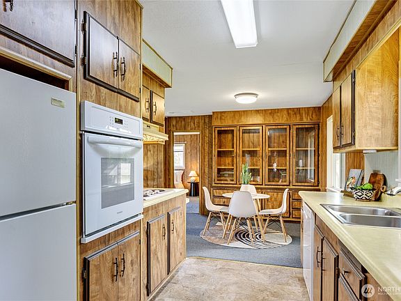 Sit back and savor the serene views of the Cascades and stunning sunsets, while watching the Ferries come and go. Step back in time and relax in this spacious and well maintained manufactured home, nearly untouched by modern designs, but updated where it counts. This sweet and cozy home features a spacious primary with ensuite and luxurious soaking tub, a large living room, and plenty of room to work from home. Just minutes from the Edmonds/Kingston ferry, and foot ferry to Seattle. Perfect for a weekend getaway or party pad, with a built-in bar, ready and waiting to entertain guests. Enjoy this charming property as is, or say out with the old and build your dream home instead! Don't let this fantastic opportunity pass you by!