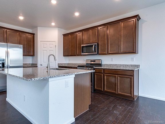 Brand NEW energy-efficient home ready NOW! Arkansas features beautiful quartz kitchen counter top with large island with 42' upper cabinets, refrigerator, washer & dryer, crown molding, wood flooring throughout main level. Loft & additional bedroom on the first level offers extra spaces, gas oven, spacious master bathroom with walk-in closet, 5 piece bath, outdoor living, full AC dual zone, unfinished standard basement included rough-in, incredible design & more! Enjoy living at Aspen Reserve conveniently located close to Downtown Denver, this community blends the best of urban and suburban living with easy access to shopping, dining and major commuting corridors. Known for their energy-efficient features, our home help you live a healthier and quieter lifestyle while saving thousands on utility bills.