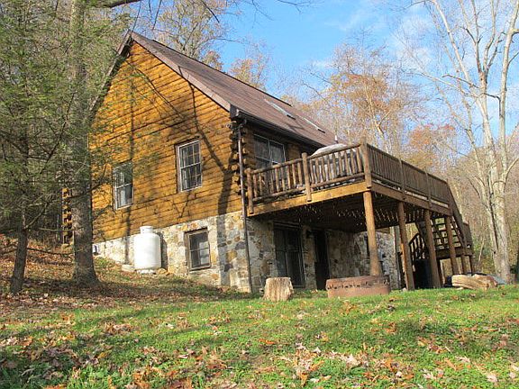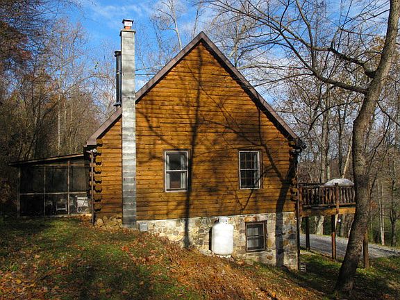 Beautifull unique log home/cabin with hand shaved log construction, & stone veneer exterior basement walls, on 2.85 wooded acres. Great room with cathedral ceiling & woodstove with stone hearth. Pine floors thru out main floor & loft. Finished basement with thermostatically controlled propane heater/stone hearth. 12 x 23 new front deck, plus enclosed screened-in, 10 x 12, private rear porch. Very near Seven Points Recreation area of Lake Raystown, yet convenient to Huntingdon shopping & conveniences.