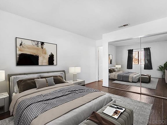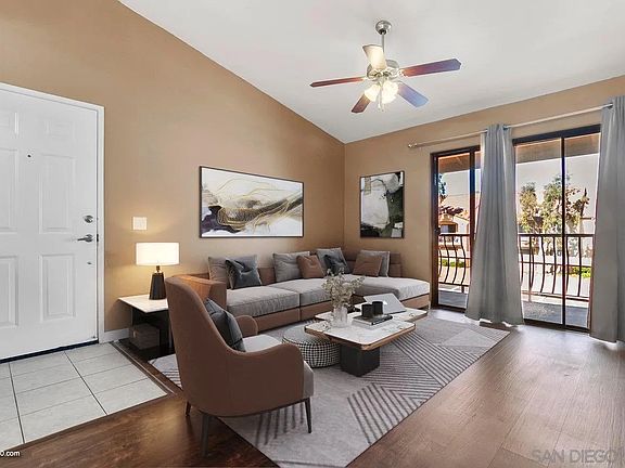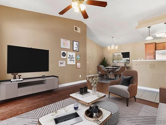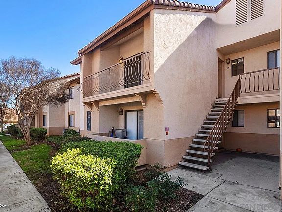 2 Bedroom, 2 Bath upstairs unit with vaulted ceilings and 2 assigned parking spaces in Villa Montevina. 1 covered space and 1 uncovered located close to the unit. Kitchen has granite countertops, stainless steel appliances and ample storage cabinets with pantry. Wood like flooring throughout. Mirrored closets in bedrooms. Full sized laundry hookups in hallway. Spacious balcony. Community features Pool, spa, tennis and racquet ball courts, fitness center, clubhouse and sauna. HOA covers water. This is a great unit within walking distance to Cuyamaca College, shopping and several dining options. Some photos are virtually staged. Don't miss this one!