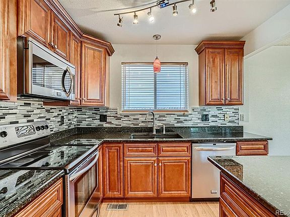 Welcome home! This home is clean and is in move-in ready condition. The living room features a gas fireplace with soaring vaulted ceilings. It is also open to the dining room and kitchen. The kitchen is updated with granite counter tops, stainless steel appliances, and the cabinets are stained in cherry. The main level also features a 1/2 bathroom right off the kitchen. The laundry room is also on the main level, the washer and dryer are newer and are included. The upper level features all 3 bedrooms. 2 bedrooms share a full bathroom and the primary suite, offers another full bathroom with a great walk-in closet. The carpet on the upper level is brand new! This home has tons of windows that let in an amazing amount of natural light. The basement is finished and could be used as a family room or even a great home office, plus there is still plenty of room for storage. The backyard is fully fenced and is great for entertaining. This home sits on a quite street and is 1 block away from a great park, offering basketball courts, green space, and a great playground. There is a walking path, tennis courts, library and several school close by. Shopping is only minutes away and to get to Denver and dia is just a short drive away. Don't miss out on this one!