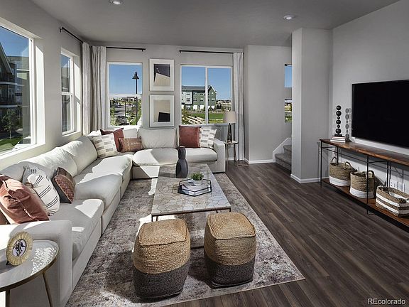 Former model home available now as-is! Furniture and accessories do not convey! Model home with amazing view of the Front Range from gigantic Roof Top Deck! Stylish finishes in this incredible 4 bedroom, 3.5 bath home. Main Floor Bedroom has private bath and could make a flexible home office. Large Corner covered patio off of kitchen. Enjoy living near the Van Bibber Trail, Little Raven Park, Old Town Arvada and light Rail. Tech Package, Lighting Package, Stainless appliances. This ideal west-metro Arvada location puts you in close proximity to everywhere you want to be, with the nearby lightrail you have endless opportunities to explore. These three-story townhomes with little yard maintenance offer rooftop decks to enjoy outdoor living. We also build each home with innovative, energy-efficient features that cut down on utility bills so you can afford to do more living.* Each of our homes is built with innovative, energy-efficient features designed to help you enjoy more savings, better health, real comfort and peace of mind.