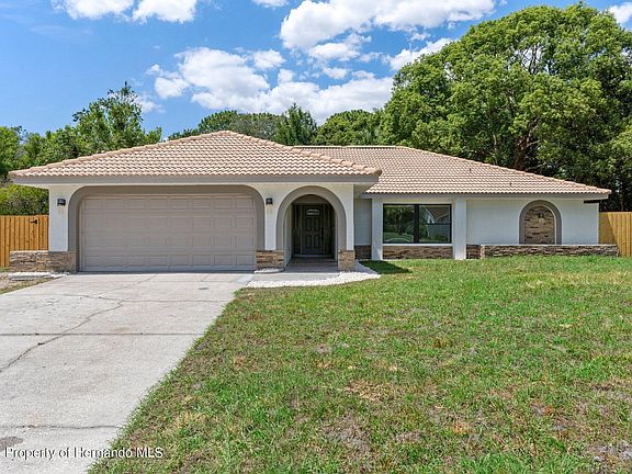 Looking for a Pool Home, with Brand NEW Windows 2024, NEW Septic Leech Field 2024, Freshly Remodeled, Huge, Fully Fenced in Backyard, and a GORGOUS POOL!! Who said you can't have it all?? Come on over for a swim and check out your newly redesigned, freshly remodeled 4 bed 2 bath POOL home, located in the heart of Spring Hill Florida, only the best, to enjoy Florida's hot summers. Step across the threshold and into your welcoming foyer, followed by an impressive living area encompassing your living room and family room. Off to your right is the kitchen you have been dreaming of!! Check out your New custom designed kitchen, boasting plenty of counter and cabinet space, and premium stainless-steel appliances. Your kitchen boasts a very large impressive granite countertop island that overlooks your living area and numerous views of your sparkling pool, perfect for entertaining and interacting with family and guests. Your master bathroom also comes complete with dual walk in closets, gorgeous granite countertops, dual vanity sinks. Not to mention your private, custom designed, curb less, walk in shower, equipped with a full body shower tower feature that will leave you mesmerized. This home comes complete with 4 bedrooms with a split floor plan and plenty of closet space. On the other side of your home you will find your updated guest bathroom that is just as impressive with granite counters, dual vanity sinks, and an incredible shower/tub combo, mesmerizing shower tower feature and custom tile work all the way to the ceiling!! Your new home has far too many upgrades to list, that you will be the first to enjoy. All of the work was completed with high end finish carpentry in mind and professionally designed from top to bottom. If the home doesn't take your breath away the backyard and view will. Step outside onto your fully covered back patio and you will find your tranquil pool oasis. Get ready to lay back and relax on the pool deck or hop in, and go for a swim!! Your property is located in the highly sought after 34609 zip code and you have a huge backyard with property encompassing over a half acre of land to enjoy. Your large backyard is fully fenced in and has dual swinging gated doors to gain access to or drive through and park all of your toys, from the four wheelers, atv's, boat, RV and more!! Your backyard paradise comes equipped with its own fresh water well that you can use for irrigation or for your new garden you decide to put in. Your yard also has gorgeous mature trees and landscaping with several citrus fruit trees throughout. This home has it all, and is one that doesn't come across often, you do not want to miss out on, so schedule a private showing today, and get ready to be amazed. ( NEW windows 2024, NEW Septic Leach Field 2024, Air Conditioning 2017)