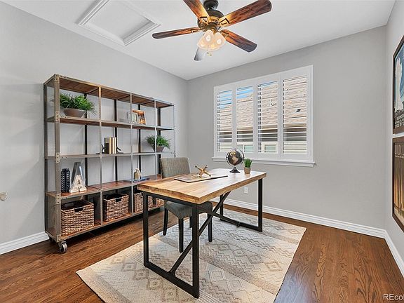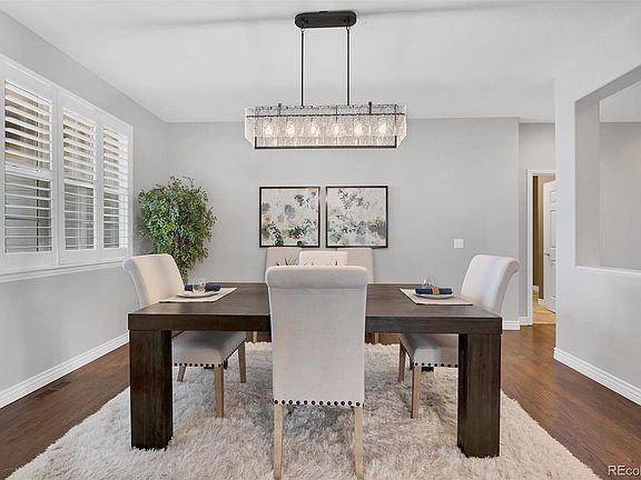 Welcome Home, this stunning, ranch style features a full finished basement and has been meticulously maintained and updated with great taste and care. Move right in and begin enjoying a superb blend of luxury and comfort, with convenient parks, trails, and 2 neighborhood pools. An inviting front porch greets you, and after stepping into the foyer, gorgeous newly refinished wood floors lead you inside! A spacious dining room features beautiful wood floors, plantation shutters and is a wonderful additional gathering space. Enjoy culinary delights and entertaining in an open design kitchen that is the heart of the home with a large center island, stainless appliances, built in coffee bar and cabinets, plus a breakfast area that opens to the perfectly sized deck and patio. The roomy living room with built in sound system opens from the kitchen, and working from home or doing paperwork is a breeze in a roomy office with French doors. A luxurious Primary Bedroom features new carpet and paint, a large walk in closet plus a spacious bathroom with shower and tub. Downstairs is the Perfect set up for Inlaws or Students, featuring a Second Primary Suite with en-suite bathroom, a kitchen area with full size fridge, stove and dishwasher which can also be a bar area, check out the kegerator. Fabulous for holidays and guests too! A spacious family room could accomodate a pool table and there is a second laundry room, roomy bedroom, guest bathroom plus an exercise, hobby or craft area featuring storage and counters. Immaculate throughout, this home features a newer furnace and AC, brand new roof, plantation shutters and new interior paint in many areas. Outside a spot is ready for your hot tub, the electric is installed. There is lots to see and discover in Parker with a dining, the PACE center, entertainment and a recreation center. This special home is waiting for you!