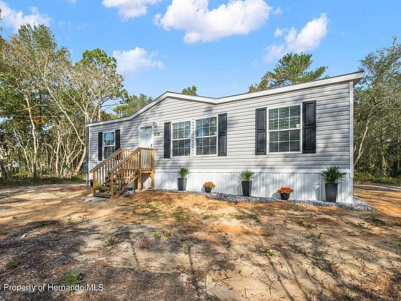 This Brand New Fleetwood Home, Built in 2023 is a perfect blend of modern design and country living. The home features beautiful waterproof vinyl wood flooring throughout the entire home. There are three spacious bedrooms and two bathrooms, each with a tub shower combo. The Open Layout is Accentuated by Modern Fixtures and a Stunning Kitchen !! This Kitchen is sure to inspire your culinary creativity, with Gorgeous White Cabinets, Brand New Appliances and a Closet Pantry, perfet for all your storage needs. The living room is equipped with a new upgraded fan light and recessed lights, creating a warm and inviting atmosphere. The master bedroom features recessed lights and a new 52 inch fan, ensuring your comfort at all times. There is a large walk-in closet perfect for your entire wardrobe. The master bathroom is a haven of luxury with a large vanity and dual sinks, built-in linen closet and a tub shower combo. The property spans 2.5 acres and is zoned for agricultural residential use, making it perfect for those who love country living. Despite its rural setting, it is conveniently located close to shopping, dining, and restaurants. If you like the beach..Bayport and Pine Island are just a short drive away !! Come Experience the best of both worlds in Weeki Wachee, Florida. Live the country lifestyle without sacrificing the conveniences of modern living. This property is a rare find, you can choose to split the property in half giving you the option to build another home, or sell the land. Don't miss out on this opportunity to own a piece of country paradise !! This Gorgeous Property with 2.5 acres and a Brand New Home are priced to sell quickly for only $269,900 !! Make your offer today.