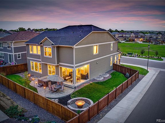 Better than new two story, energy efficient smart home, offering finishes you would see in a model, including an amazing pre-wired configuration with Cat 6 infrastructure, speakers in 6 areas, Ring, Kevo Smart locks, motorized Hunter Douglas blinds for the upper windows in the Great Room and multiple USB plugs throughout the house! Just under 3 years old, this home sits on a desirable corner lot. Upon entry, an ideal work from home set up greats you with a generous office space complete with French Doors and a beautiful view of the neighborhood park. The kitchen offers an entertainer's dream complete with all stainless-steel appliances including a café-6 burner gas double oven and a large kitchen island, a walk-in pantry and abundant cabinet space throughout. Natural light floods through this home not only through the large windows on the main level but also from the second story windows in the Great Room. The second level offers an open loft space and two bedrooms joined by a Jack and Jill bathroom. On a clear day, the mountain views from the loft and the bedroom windows are breath taking. The Master Suite is privately tucked away featuring a 5-piece master bath complete with over-sized, his and her walk-in closets, large soaking tub and frame-less glass in the shower. One of many selling points of this home is the finished basement complete with built in speakers for your surround sound system, blackout, Hunter Douglas blinds and a rough in for a wet bar providing a rare opportunity for you to add to the already perfect entertainment space. Out back enjoy a professional landscaped backyard offering just the right amount of yard combined with a built in sitting wall. Look no further for your forever home... this one is it!