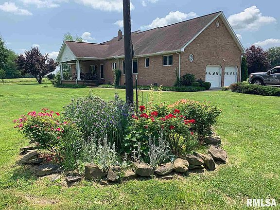 Take a look at this luxurious country home located close to Rend Lake! This custom built 2200 square foot brick home is tucked back off the main road on 6.74 acres. This well built and well maintained home features 3 beds/2 baths on the main level and 1 bed/ 1 bath in the partially finished basement. The home has nice hardwood flooring in the living and dining room area along with a double sided gas fireplace. The large kitchen area with ceramic tile also has a dining area with large windows to look out and watch the wildlife in the well manicured backyard.The large covered back porch makes a great place to sit and watch the wildlife while drinking your morning coffee . Attached two car garage. More acres available for purchase. Total of 70 acres that is part woods and tillable. Range, Refrigerator, Dishwasher, Washer and Dryer. Some home furnishings negotiable