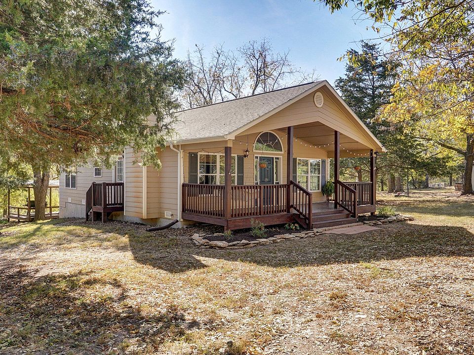 Adorable one-level home on 10 ACRES! Two bedrooms | two baths | large shop equipped with 220 electric and concrete floors! You are welcomed by a large covered porch into a fantastic open concept floor plan with a vaulted ceiling. Natural light pours in and illuminates the space. Kitchen features granite countertops, island and a full stainless steel appliance package! Cozy up by the woodburning fireplace this season! Hall bath offers a dual sink vanity. The primary bedroom is well equipped with a en suite. The exterior has plenty to appreciate too! Hardie board cement siding, shop, chicken coop and a covered deck. The perfect place to sit and relax. Abundant wildlife with the mostly wooded land provides ample hunting or viewing pleasure! This complete package offers the home you have been looking for with acreage and outdoor structures for all of your hobbies