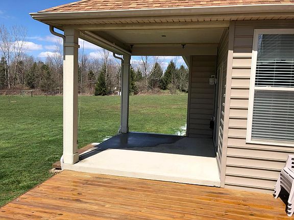 A stately private rolling 6 acres, with a lovely ranch home featuring all the right amenities! This location is perfect for a little gardening, and raising your family around animals, horses, goats, chickens, your choice... The back 3 plus acres is fenced pasture with a 14'x 16'one side open pole barnThe homestead is located in the middle of the 6 acre parcel with a 10' x 12' storage shed, the house has a 12'x 10' covered back porch and adjoining 16'x 16'deck! This ranch beauty is loaded with upgrades, 9 foot ceilings, hardwood floors, ceramic flooring in all baths,and 1st floor laundry, granite counter tops, all appliances stay, pantry, new kitchen lighting, classic ceiling fans. the master bath features more granite with double sinks, soaking tub, and 42''x 46'' shower/with seat! EZ2C