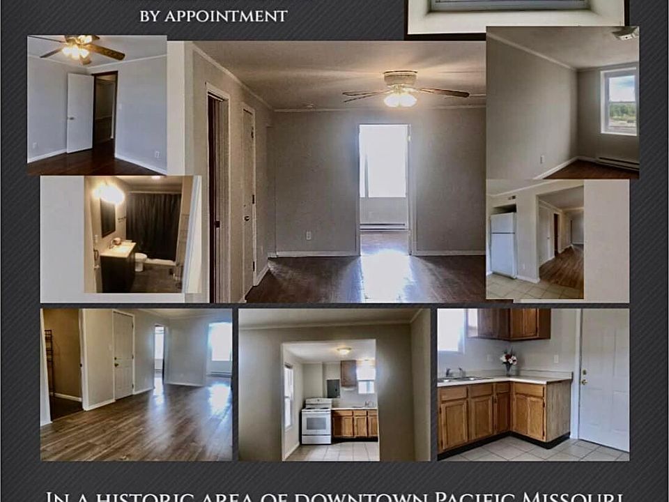 Located 30 Minutes From Saint Louis this 700 + sq ft 2 bed, 1 bath second story apartment is directly above Say Art Studios The Gallery At 119 East Saint Louis Street. Located in a historic area of downtown Pacific Missouri, this apartment is within walking distance from local shops, restaurants and parks. No Pets (preferred and marked) No Smoking New Oven New Kitchen Sink New Flooring New Hot Water Heater Updated Paint Lovely Window Views Outdoor Balcony Fenced Shared Courtyard Garden Area Available Apartment is available immediately! Water, sewer and trash is included in rent. Renter responsible for electricity and any other utilities. 1 year lease preferred.