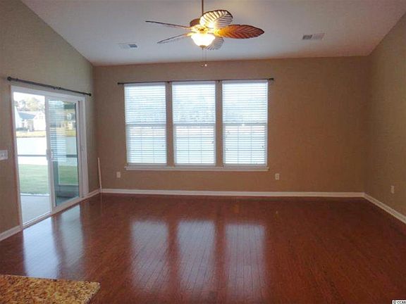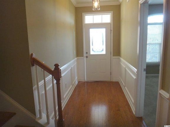 Move in ready! 3BR/3BA with 2BR's and 2BAs down and the 3rd BR and BA upstairs over a 2 car garage. Beautiful glass front door opens into a long foyer with hardwood flooring. Kitchen offers stainless steel appliances including a gas range, side by refrigerator, microwave & dishwasher. A center island is great for extra counter top space and cabinetry plus a nice pantry. Granite countertops, tile flooring, breakfast bar and high ceilings make this a spacious room for cooking and entertaining. The formal dining room is just off the kitchen and it also has hardwood flooring, tray ceiling, crown molding, chair rail and picture mold trim. The living area is open to the kitchen has hardwood flooring, vaulted ceilings with a fan, a triple window gives great natural light and a view of the lake. Sliding doors lead to a large screened porch. The master bedroom has vaulted ceilings with a fan, walk in closet and a large bath. Sliding doors in the master bedroom also lead out to your screen porch. Laundry room with tile flooring, washer & dryer included. Storm door at the front entry and the garage entry leading into the laundry room. Community pool with clubhouse and fitness area are open to all residents. This community is minutes to the ocean, fine seafood dining in Murrells Inlet, Brookgreen Gardens, Huntington State Park, Waccamaw Hospital and so much more. Call today! Easy to see! Square footage is approximate and not guaranteed. Buyer is responsible for verification.