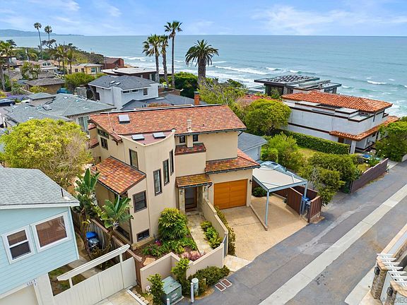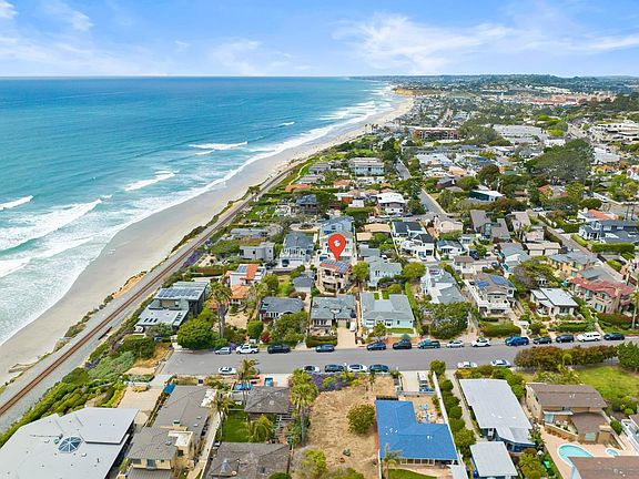 Newer construction (2005) in a prime Del Mar Village location, with Amazing Ocean Views. The interior is very rich in use of exotic woods, Modern high end kitchen, Vaulted open beam ceilings, La Cantina doors that open to View decks for the indoor - outdoor lifestyle you will never want to leave home! Park your car and enjoy this prime village location that is close to beach access, Power house park, & restaurant's. The entry level Master suite has a private ocean view retreat/office area and access to private backyard. Also, there is a huge basement area with laundry room, game room & multiple options for more bedrooms if needed.