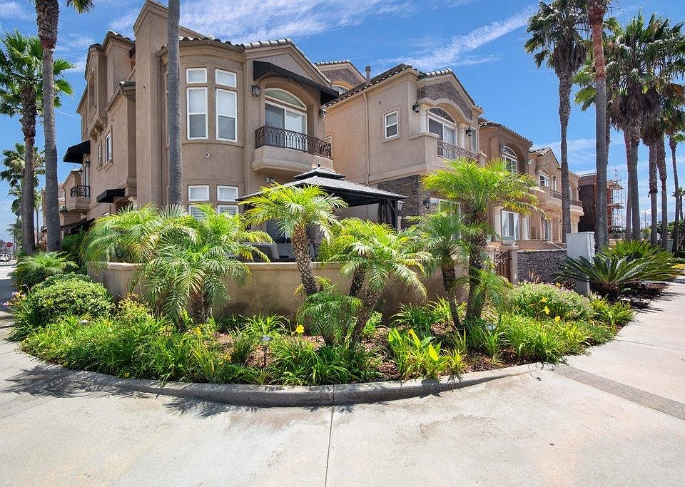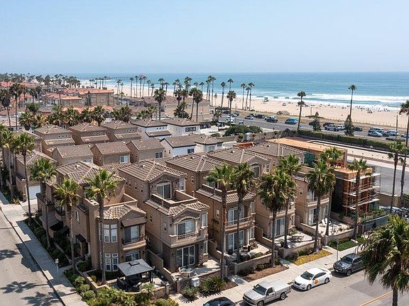 CALLING ALL BEACH LOVERS, THIS BEAUTIFUL ESTATE SITS ON A CORNER LOT, ONE BLOCK TO THE BEACH! Mostly furnished three story custom beach home features 3 bedrooms, 4.5 baths, bonus room on 2nd floor, and loft on third floor with sun deck. Steps to the beach, pier, downtown Main Street & The Strand shopping and Pacific City. Rinse the sand off with the outside shower before entering the home! Beautiful upgrades throughout including stone & wood flooring, crown molding, custom window coverings, custom light fixtures, Cat-5 wired, plumbed ready for A/C unit & so much more! Living room has a sliding door leading out to the front patio, where you can relax with ocean views. Travertine and Wood flooring on all three levels. Beautiful kitchen with island and granite countertops, 6 gas burners with built-in refrigerator, oven, microwave, dishwasher, and side patio with fountain and gas. Vaulted ceilings and media room on second floor Master bedroom has a fireplace. Master Bath with Jacuzzi tub, stone counters, dual sinks, tumbled stone shower and walk-in closet. Attached 2 car garage with direct access to family room and kitchen. The 3rd level loft has its own full bath; could be used as another bedroom/office/game room. Home is plumbing ready for A/C. Crown molding throughout and wired for Cat-5. Walking distance to beach, Main Street, Huntington Beach Pier, shopping, restaurants, schools, and doggie beach. Twelve homes in this block were built at the same time so all the utilities are underground. Washer, Dryer, Refrigerator. Pets MAY be considered with security deposit. Washer, Dryer, Refrigerator, all existing furniture with the exception of master bedroom & living room. Pets MAY be considered with security deposit.