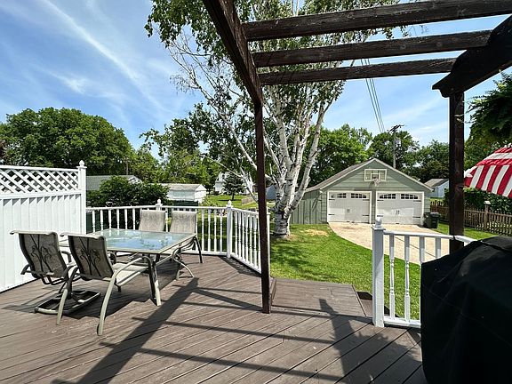 Charming 4 bed with egress window in the basement for possible 5th bedroom. 2 Bath 2 stall garage with lean to shed, patio with fire pit located only a block from Maccray schools,tennis & basketball courts,park & swimming pool. Finished basement with fireplace,built in TV, lots of storage space & tons of room for get togethers. Home & garage have just been painted and deck stained.