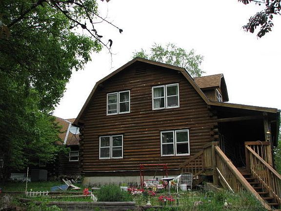 This is a true log home with log beam ceilings and log walls on the main floor. Living room offers lots of large windows for a great view. Upstairs you'll find 3 bedrooms and a craft room that could be an unconventional 4th bedroom. There is even a full apt with kitchen area & private bath! Basement is partially finished with full bath & utility area. Home could use some updating and the owners are currently working on that but you can complete the job & have your own style of flooring, etc! Pretty view of the countryside, pond and fields. Large yard has a variety of shade, evergreens and fruit trees. There are 2 garden spots and a nice 30'x48' building with concrete floor for a super shop, hay storage or other options. Basement is currently being used for a laundry room and small clothing manufacturing business.