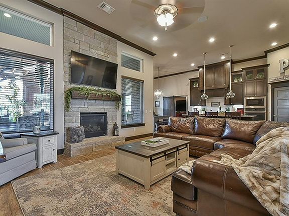 Experience the charm of this well-cared-for 3-bedroom with an office, bonus room that could be used as a 4th room, 2.5-bathroom home, boasting 2,719 square feet of space. The airy 12-foot ceilings create a roomy feel in the open-concept living area. Entertainment comes alive with the surround sound, large kitchen island, gas stove, bluetooth controls (including the garage door, HVAC system, appliances, and security system), and so much more! Out back, the serene escape awaits, featuring a lovely pergola-covered patio and a custom wood fireplace (All firewood is included) - an ideal setting for relaxation. Adding to the allure, the property includes a custom outdoor TV cabinet and TV including a sleek sound bar, promising endless enjoyment!