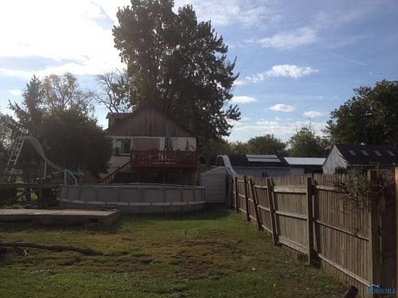 Peaceful Reno Beach neighborhood, close to Lake Erie. 2 BR, 1 BA home, upper level living, above ground pool, second story deck. Spacious yard, plus additional lot. Attached garage with utility room on ground level. Well pump replaced 2015. Newer windows main door. Home needs upgrades. Being sold as is.