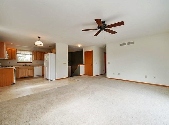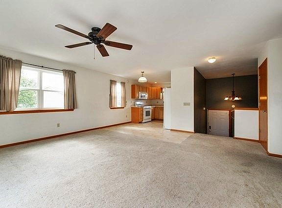 This contemporary home has much to offer. It measures at 2,072 square feet of living space with 3 bedrooms and 2 full bathrooms. It features an attached 2 car garage on the front. The split foyer plan has a quaint eat in kitchen with white gas appliances. The finished daylight basement is spacious and can still be built out to suit your needs. The back deck has a great view of the landscape and is perfect for entertaining. It flows down on to the patio. There is an outbuilding for storage or a work area. Easy access to Interstate 43, shopping, and dining.
