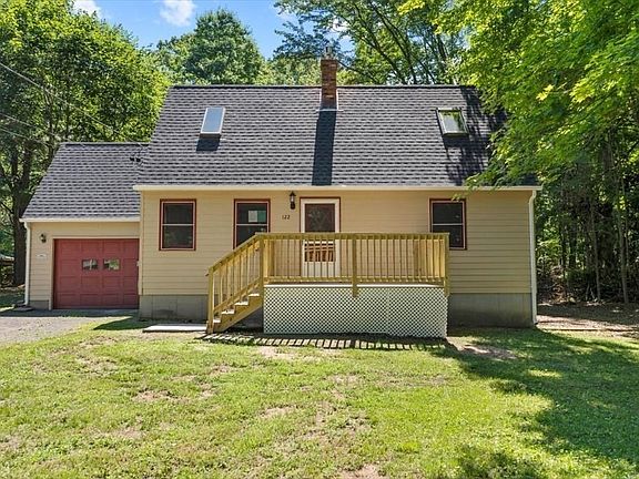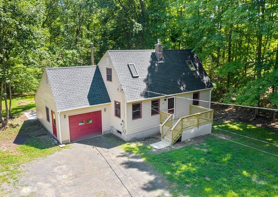 Move right in to this completely remodeled 3 bedroom Cape on 1.63 acres. Home includes a living room with fireplace, dining area with sliding doors overlooking backyard. Kitchen has been completely remodeled with new appliances countertops and cabinets. First floor master bedroom with hardwood floors. First floor full bath with new wraparound shower, tub, and vanity sink. Second floor has two additional bedrooms with skylights refinished hardwood floors and spacious closets. Full basement ready for your family room exercise room or private office.. New roof 2022, new propane gas heating system 2022, new septic system 2022. This house is spectacular and sits on a beautiful level piece of land with wooded area behind.