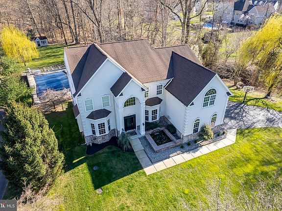 Don't miss out on this beautiful 4 bedroom, 5 full bathroom home featuring a 3-car side entry garage, fully finished walkout basement, and a built-in pool, all situated on the most beautiful 1.85 acres in the sought after Natures Walk neighborhood of Woolwich Twp. Pride of ownership is evident as soon as you pull up, which continues throughout. This Estate style home features an impressive stucco & stone front with an extended driveway leading to the 3-car side entry garage with auto openers and tons of built-in storage. As you approach, you will love the custom Koi pond with its relaxing sound of the sheer descent waterfall. Step through the custom front doors and into the welcoming entry foyer that features 20 ft 2 story ceiling with circle top wind, open and upgraded oak & wrought iron stairs, and railings leading to the open 2nd floor. The cherry hardwood flooring flows into the formal living and dining rooms. Custom features which include tray ceilings, crown molding, wainscoting, built-in window seat and arched openings with impressive pillars. No expense was spared here. This area opens to the beautiful kitchen with its custom 42-inch Home Crest cabinetry w/crown molding, granite counters, 8 ft. center island with granite, recessed and modern style pendant lighting above, tiled backsplash, undermount pot scrubber sink, stainless steel appliances, and exhaust hood venting to the exterior. This area is open to the morning room that was customized into a full scale 3 seat wet bar with custom cabinetry, granite counters, tiled backsplash, 2 refrigerated drawers, wine fridge, and beer kegerator. This area also features a sliding door out to an elevated Trex type deck overlooking the beautiful grounds and the refreshing in-ground pool. Perfect setup for entertaining family & friends all year round. Back inside, the huge adjoining family room features circle top windows and a stone gas log fireplace with mantle and hearth. Perfect spot to snuggle up to on those cold winter days. The 1st floor also features a home office with custom woodwork, a full tiled bath with granite counter, and a very convenient laundry room area. The 2nd floor features 4 very spacious bedrooms and 3 of the 5 full baths. The 22 x 20 primary bedroom ensuite features double entry doors, vaulted ceilings, open sitting room through an arched entry with pillars with a walk-in closet. Great spot to snuggle up with a good book. Also featured is a dressing room area with a makeup area, granite counters, and another walk-in closet which opens to the private spa like bathroom retreat. This great space features a jacuzzi type tub with jets with a large picture window overlooking the private parklike property, dual vanity & sinks w/granite top, tiled flooring, an over-sized 2 person tiled & frameless glass shower w/2 showers and built-in seating. Perfect spot to relax after a long, stressful day. Bedroom #2 is a Princess suite with its own private bath. Bedrooms #3 & #4 share an adjoining Jack & Jill bathroom. All the bedrooms also feature walk-in closets. A major bonus feature of this home is the fully finished Daylight walkout basement. This space features a spacious soundproof theater room with ceiling mounted projector included. Perfect for watching your favorite movie on the big game. Next you have a game room area for the gamers with built-in cabinetry & granite counter. This area opens to the huge 2 room walkout great room that measures 33 x 25 in all. You will love the spacious workout room with padded rubber flooring. Perfect spot to get a great workout. A double bonus is the full-tiled bath on this level. Check out the Wine Room with stacked stone wall and built in wine racks. This awesome entertaining space opens up through the glass sliders out to the 20 x 40 Del Val pool and patio area. Perfect for hosting those summertime BBQ pool parties. This home was meant for entertaining or living a year around vacation. Hurry before this one is Gone.
