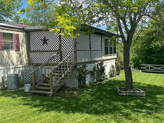 14 by 70 2bedroom& 2 bath mobile home, with 12 by 12 addition & 12 by 12 enclosed screen porch, A 18 by 18 carport & metal out building, a covered front porch with a ramp. 400& per month Lot Rent, does not need moved!