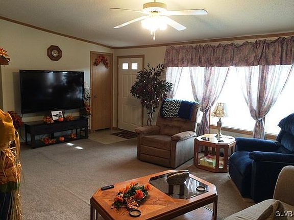 ONCE IN A WHILE! A spacious 3BR, 2BA 2005 Champion home nestled on a lot that backs up to the woods for added privacy comes available in Northside Heights. Open concept, vaulted ceilings, stone faced propane fireplace in living room for added warmth during the winter nights. Upgraded oak kitchen with bar island and all appliances. Spacious Master bedroom includes WIC, garden tub, double vanity & in the master bath! Central air, large front wood deck includes ramp, plus the rear yard backs up to the woods for added privacy are added bonuses! $390 mo. lot rent incl., W/S/G & community activities. Quick Settlement Possible! ENJOY PHOTO TOUR!
