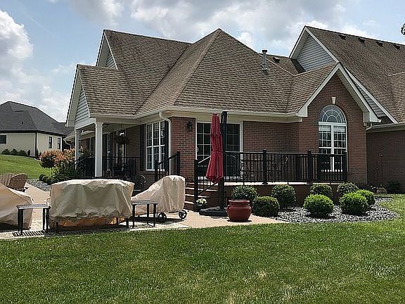 Completely remodeled in 2017, this townhouse is located in Bardstown's only golf community of Maywood. Open kitchen boasts new custom cabinets and granite countertops. All new hardwood and tile flooring throughout. The main living area includes a kitchen/den/dining room combo, and a sunroom with fireplace overlooking the 4th hole of the Maywood golf course. A master bedroom, second bedroom, spa like bathroom with tile shower, and laundry room complete the main level. Second floor consists of a very large bedroom, a TV/sitting room, and a full bath with shower/tub combination. A monthly Townhouse Association fee takes care of the mowing, landscaping, and building insurance. Sip your morning coffee enjoying the sunrise while sitting on the new composite deck. End your day with your favorite beverage while watching family and friends play golf from the 25 x 30 patio. This townhouse has what we consider to be one of the best views available in the Maywood golf course community. This lovely townhouse is the perfect spot in Bardstown's premiere neighborhood.