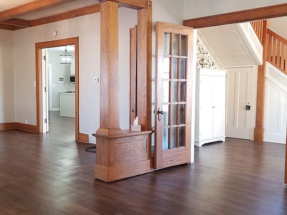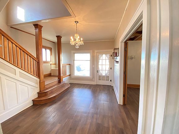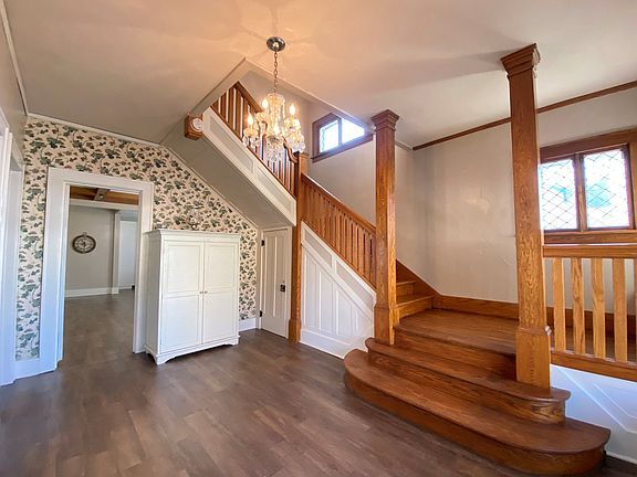 This beautifully updated two-story home offers over 3,400 sp.ft. of living space, mixing a modern open concept feel with Victorian character and charm. Highlights on the first level of this charming home include: a state-of-the-art kitchen (with custom cabinets, granite counters, farmhouse sink, subway tile backsplash, island and newer stainless-steel appliances), open concept living, laminate tile flooring, French doors, stunning oak wookwork, a large 3/4 remodeled bathroom (with a floating glass shower enclosure, porcelain tile, and built in storage). seperate laundry/mud room, tall ceilings and a charming staricase. Highlights on the 2nd story include: 5 spacious bedrooms, new carpet, a ful, updated bathroom with a walk in closet, sunroom, and access to the attic which could be finished out for more living space. The exterior of the home boasts a new back deck, storage shed, fenced in yard space, new landscaping, peach and cherry trees, a 2 car attached garageand additional gravel parking. This attractive home is a true must see close to Albia high school and middle school and offers functional space mixed with modernized Victorian appeal.