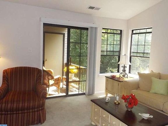 Absolutely beautiful 2 bedroom, 2 bath, 2nd floor condo in the community of Hampton Greens. Great location--Features extra large deck; sliding glass doors off of living room leads to deck with spectacular view of woods! Sliding glass doors in master bedroom with access to deck! Utility closet off of deck. New heater and central air conditioning. Dramatic cathedral ceilings, wood burning fireplace. Freshly painted rooms throughout. Eat-in kitchen with newer appliances. Master bedroom with walk-in closet, full bathroom. Private parking; community clubhouse, pool, tennis courts and jogging trail.