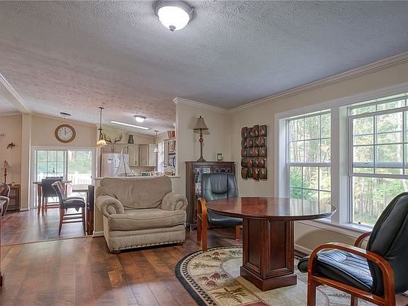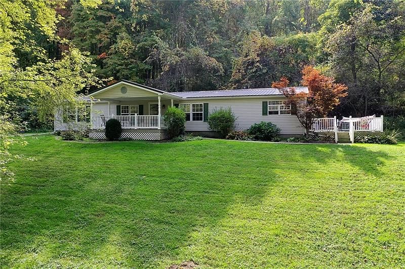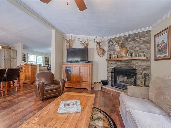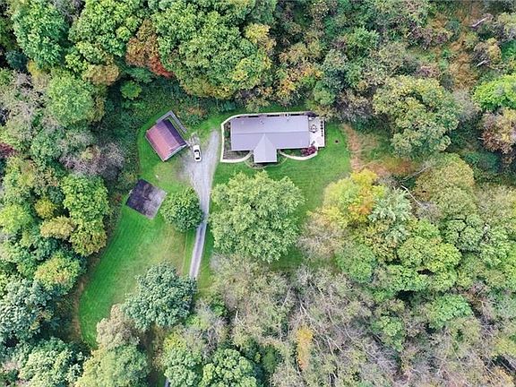 Total privacy with 5.323 acres of hunting in Seneca Valley School District. Nicely appointed with beautiful flooring, log burning stone fireplace, vaulted ceilings, crown molding, 2 decks and more! Newer roof, newer air conditioning, tilt in windows with transom windows/Stainless Steel Appliances in Eat in Kitchen. Open floor plan with sunken family room plus kitchen plus second living area (flex room) Den 3 bedrooms and 2 full baths. The heated 2 car detached garage has 2 finished rooms above it large concrete area with basketball hoop.